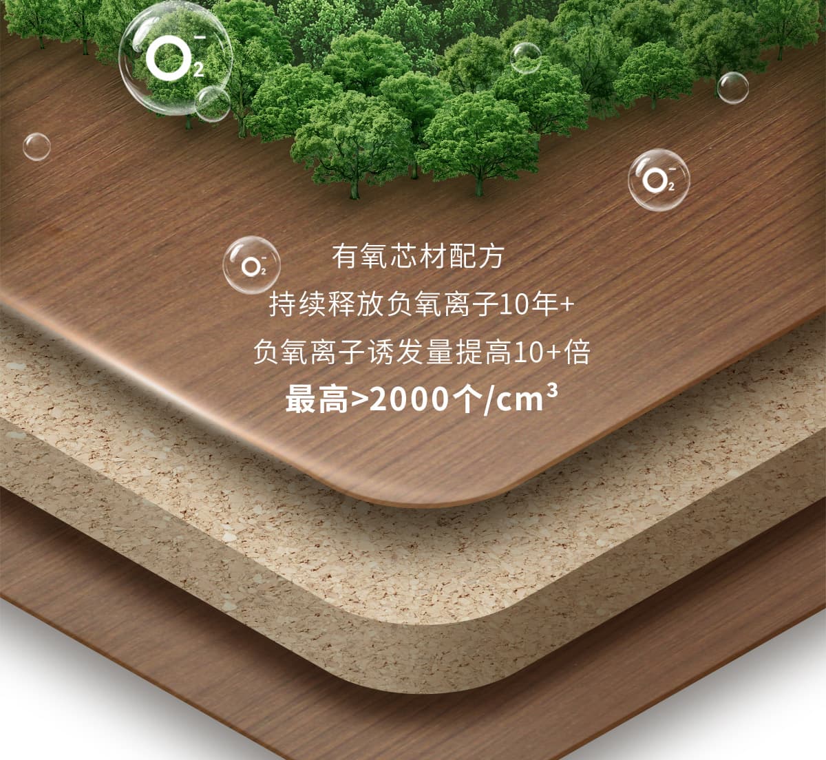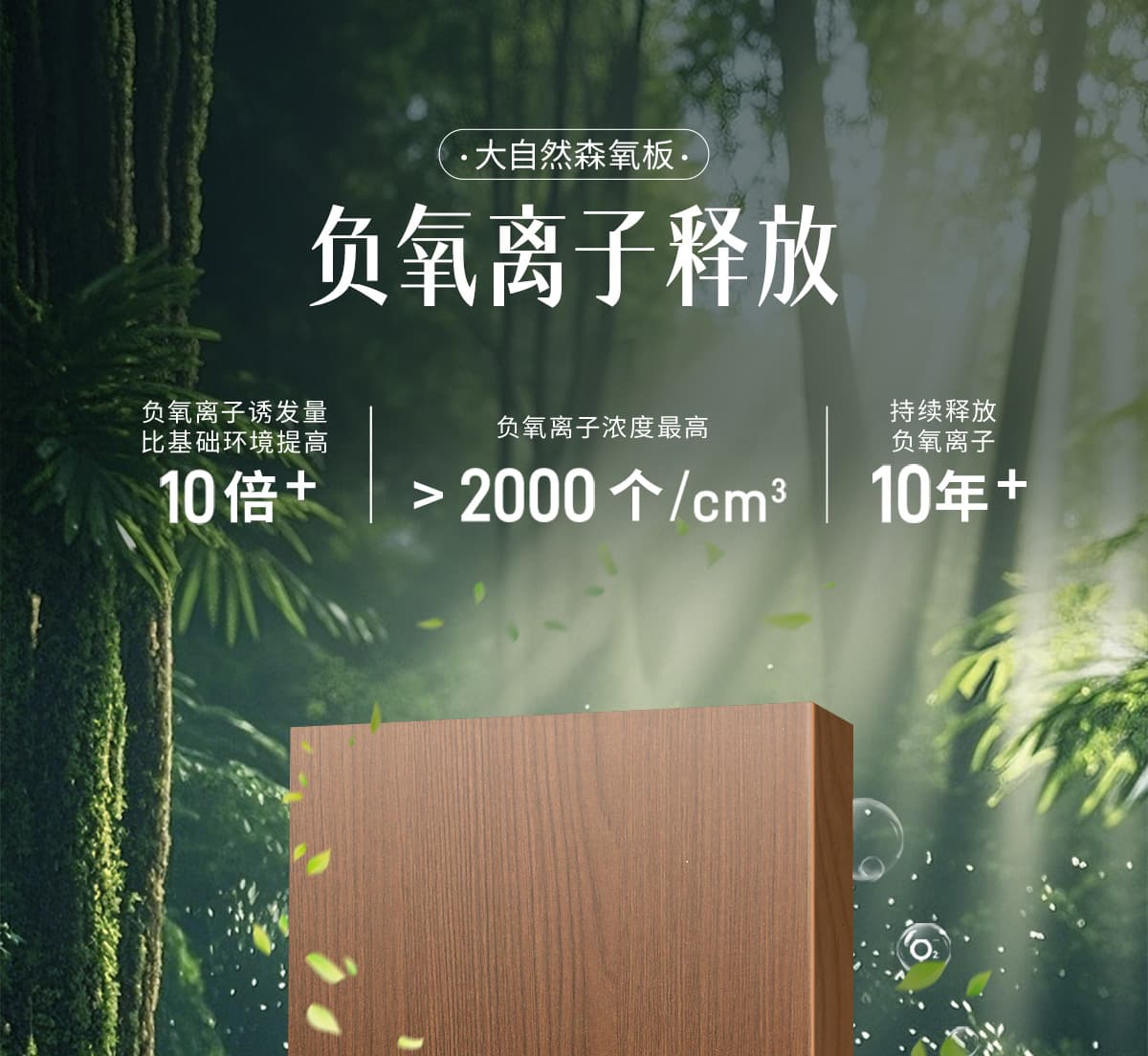 誘發空氣負離子量 比基礎環境提高10倍+