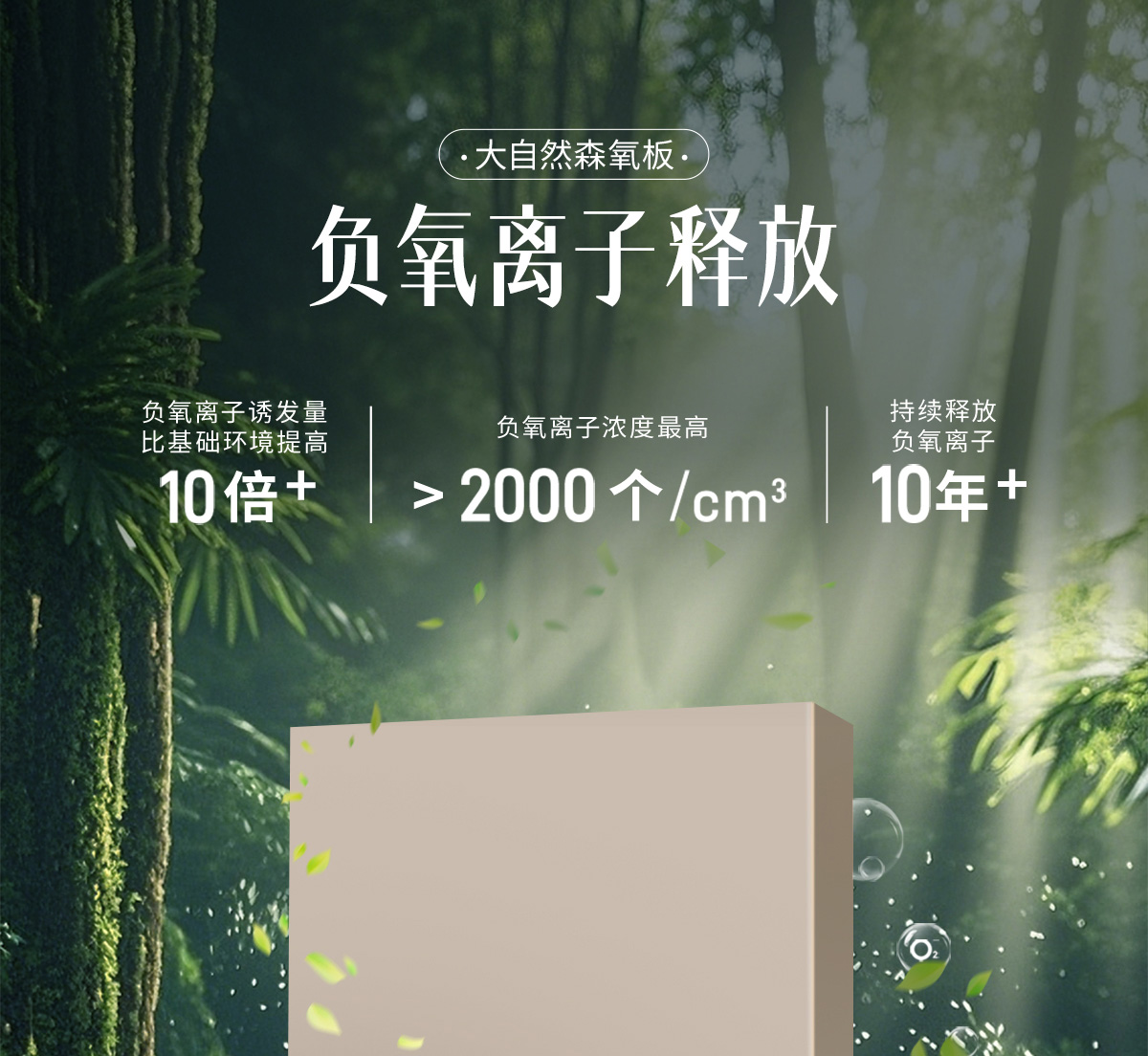 誘發空氣負離子量 比基礎環境提高10倍+