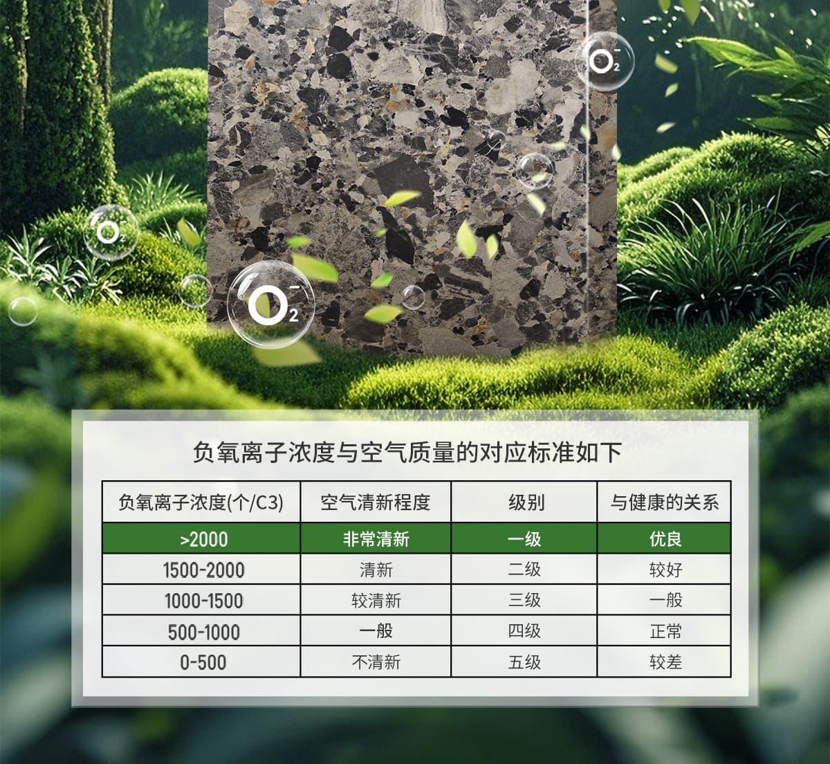 誘發空氣負離子量 比基礎環境提高10倍+